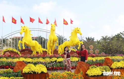 Người dân đến chụp ảnh, check-in bộ ba ngựa vàng |