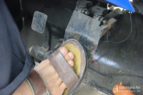 Xe có đầy đủ bộ phận chân phanh, ga…Anh Trường cho hay, xe sử dụng cơ chế điện năng như xe đạp điện. Mỗi lần phải sạc 8 giờ đồng hồ, mỗi lần sạc có thể chạy xe khoảng 30km. Ảnh: TT. |