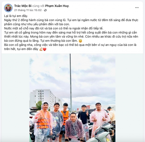 Còn nhiều anh em khác đi cứu trợ nữa nên bà con đừng quá lo lắng. Tụi em thương bà con lắm.”