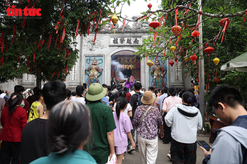Không gian Đền Hùng rợp sắc cờ, đèn lồng và dải lụa đỏ, thu hút đông đảo người dân và du khách thập phương. |
