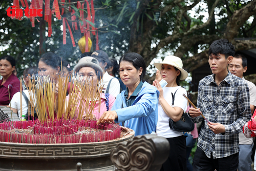 Dòng người vẫn tiếp tục nối dài, từng bước chân hướng lên đền Thượng như nhịp chảy không ngừng của lịch sử. Trên những bậc đá rêu phong, người người kiên nhẫn tiến bước, mang theo lễ vật giản dị, nhưng chứa đựng tấm lòng thành kính. Giữa không gian ấy, những con người xa lạ bỗng trở nên gần gũi hơn bởi có chung điểm đến, chung niềm tin và nỗi nhớ về cội nguồn dân tộc.