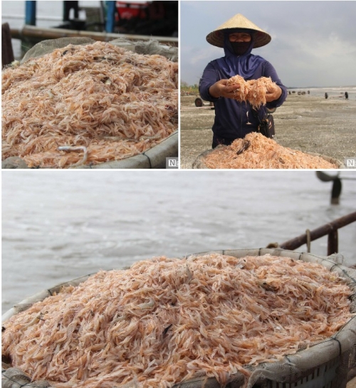 Nếu thương lái thu mua không hết, người dân đưa ruốc về phơi để bán dần. Trung bình mỗi tạ ruốc tươi sau khi phơi sẽ được khoảng 2 yến khô, giá bán dao động từ 600.000 - 700.000 đồng/yến. |