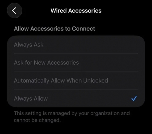 Tuy nhiên, một số báo cáo cho thấy tùy chọn này hiện đang gặp lỗi không thể thay đổi trên một số thiết bị. Apple đã ghi nhận vấn đề nhưng chưa có bản vá chính thức. Trong bối cảnh các ứng dụng như WhatsApp vẫn lưu trữ dữ liệu cục bộ dưới dạng không mã hóa sau khi nhận tin, việc bảo vệ cổng kết nối vật lý trở nên cấp thiết hơn bao giờ hết.