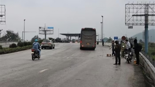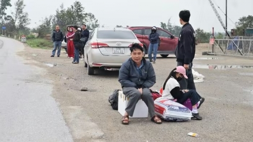 Từ sáng sớm, rất đông người dân đứng chờ xe ở gần khu vực Trạm thu phí cầu Bến Thủy 2. |