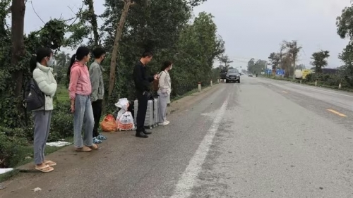 Trên tuyến đường tránh Quốc lộ 1A, đoạn đi qua địa phận xã Hưng Nguyên, dòng xe theo hướng bắc-nam tấp nập qua lại; từng nhóm người cùng hành lý chờ xe tới đón. |
