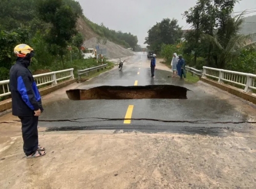 Theo đó, vào khoảng 15 giờ cùng ngày, nước lũ từ thượng nguồn đổ về đã gây xói lở đường dẫn lên cầu Ca Da tại Km85+095. Vụ xói lở đã làm hư hỏng gần như hoàn toàn mặt đường, tạo thành một hố có chiều sâu khoảng 2m.
