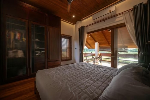 Phòng ngủ yên tĩnh có cửa kính mở ra ban công. Ảnh: Rungkit Charoenwat |