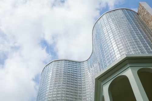 Quá trình xây dựng đặt ra một số thách thức, đặc biệt là trong việc định hình mặt tiền cong bằng hơn 3.000 viên gạch thủy tinh. Ảnh: MinqBui |