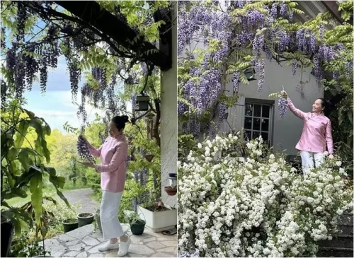 Hàng ngày, nữ nghệ sĩ dành nhiều thời gian làm vườn, trồng nhiều loại hoa và rau xanh. Ảnh: FB Tran Le Vi Levi |