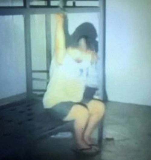 Bức ảnh do một độc giả cung cấp cho thấy một người đàn ông bị nghi là bị trói tay vào giường sắt trong một khu trại tội phạm ở Campuchia - Ảnh: YONHAP |