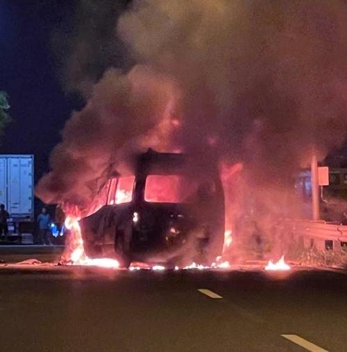Cú va chạm khiến xe cứu thương bốc cháy dữ dội. Trên xe có 5 người, trong đó 2 người kịp thoát ra ngoài, được đưa đi cấp cứu tại Bệnh viện Đa khoa Long Khánh.