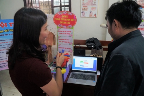 Giáo viên Trung tâm Giáo dục thường xuyên số 2 Nghệ An sáng tạo ứng dụng AI trong dạy học tiếng Anh. Ảnh: Hồ Lài |