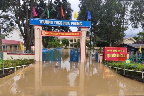 Từ ngày 18/11, trường THCS Hòa Phong (xã Cư Pui, Đắk Lắk) ngập sâu trong nước. Đến nay, sau khi nước rút, xã Cư Pui đã chỉ đạo các đơn vị dọn vệ sinh khuôn viên trường, nhanh chóng ổn định công tác dạy, học. Ảnh: Báo Đắk Lắk. |