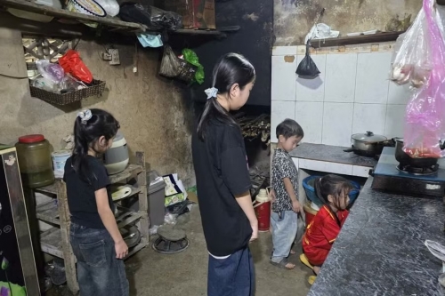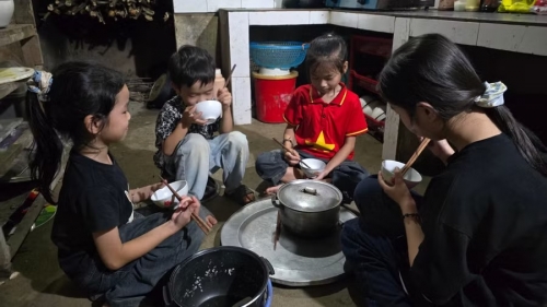 Sau những buổi đến trường, những đứa trẻ con anh Hứa phải tự lo cái ăn cho mình. |