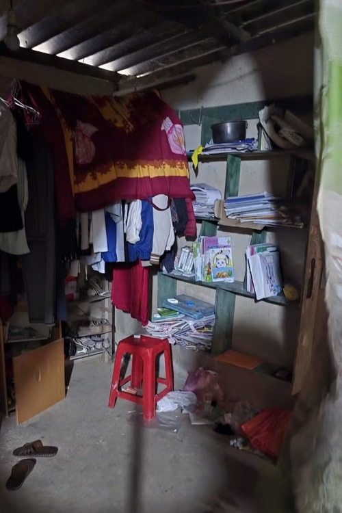 Ngôi nhà nhỏ hẹp, ẩm thấp, tường mốc loang lổ, không có nổi một góc riêng cho các em ăn ngủ hay học bài.