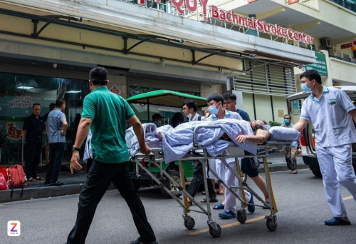 Bệnh nhân đến cấp cứu tại Trung tâm Đột quỵ, Bệnh viện Bạch Mai. Ảnh: Đinh Hà. |