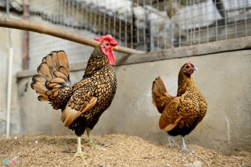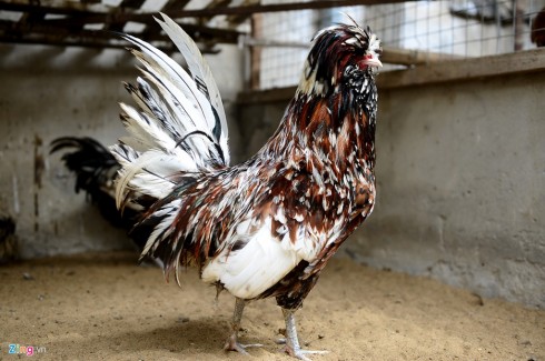 Gà Silkie sở hữu bộ lông xù kỳ lạ và tất cả đều là lông tơ chứ không phải lông vũ. Giống như thú bông nên loài gà này thường được nuôi trong nhà làm thú cưng như chó, mèo. Chúng không thể bay được như những con gà khác. Hiện trên thị trường, một cặp gà trưởng thành Silkie có giá khoảng 20 triệu đồng. Onagadori hay còn gọi là gà đuôi dài Nhật Bản, thường được nuôi để làm cảnh và trưng bày. Đây là giống gà nổi bật với đuôi rất dài, kỷ lục hiện là con gà có đuôi dài 7 m. Vừa qua, một chủ trang trại ở Bình Dương đã bán cặp gà có đuôi dài hơn 2 m cho Hội hoa xuân Phú Mỹ Hưng (TP.HCM) trưng Tết sắp tới, với giá 65 triệu đồng/cặp. Gà vảy cá sư tử có nguồn gốc từ Ban Lan, với bộ lông như vảy của loài cá, kết hợp với bờm dũng mãnh của sư tử che khuất mặt. Điểm đặc biệt của giống gà này là sở hữu cặp sừng trâu trên đầu thay vì mào như các loại gà khác. Giống gà này thường được nuôi để làm cảnh, có nhiều màu như vàng, đen, trắng, xám, nâu. Một số trang trại nuôi loài gà này đang rao bán trên mạng với giá 1-4 triệu đồng/con. Tác giả bài viết: Lê Quân