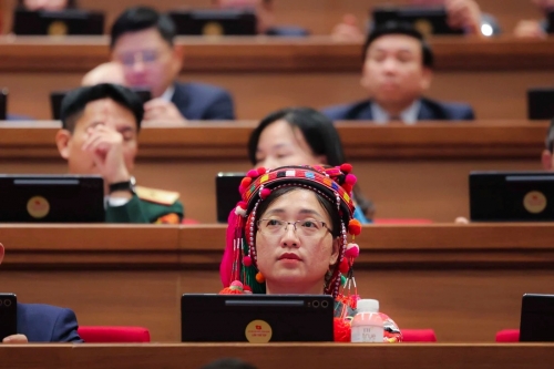 Một nữ đại biểu tham dự phiên trù bị Đại hội đại biểu toàn quốc lần thứ XIV của Đảng - Ảnh: NGUYỄN KHÁNH |