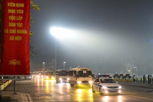 Đoàn xe chở lãnh đạo Đảng, Nhà nước di chuyển đến Trung tâm Hội nghị quốc gia - Ảnh: PHÚC TÀI |