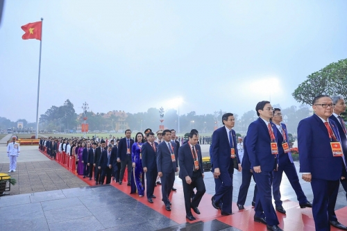 Tổng Bí thư Tô Lâm, Chủ tịch nước Lương Cường, Thủ tướng Phạm Minh Chính, Chủ tịch Quốc hội Trần Thanh Mẫn và các lãnh đạo Đảng, Nhà nước, đại biểu vào lăng viếng Chủ tịch Hồ Chí Minh - Ảnh: NGUYỄN KHÁNH |