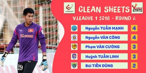Khá nhiều người bất ngờ khi thủ môn Nguyễn Tuấn Mạnh của S.Khánh Hòa đang chia nhau vị trí thủ môn giữ sạch lưới với Nguyễn Văn Công của Hà Nội FC. Hai thủ môn này có 4/6 trận đấu tại V-League giữ sạch lưới, đều chỉ thủng lưới có 2 bàn, một thành tích rất đáng ghi nhận.
