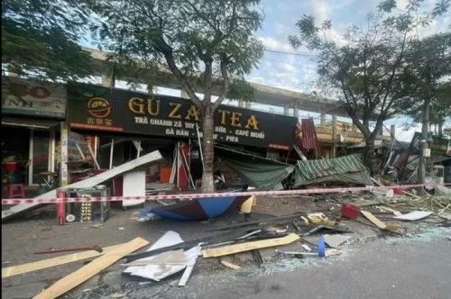 Tại hiện trường, mái tôn một số ki-ốt nghiêng đổ, nhiều vật dụng bị hư hỏng. Thống kê sơ bộ, có khoảng 3 người dân bị thương nhẹ, được đưa đi cấp cứu. Bước đầu nghi vụ nổ do rò rỉ khí bình gas.