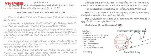 Theo quyết định, BMC bị cưỡng chế do nợ thuế quá 90 ngày, với số tiền nợ lên tới 91,9 tỷ đồng. Biện pháp cưỡng chế có hiệu lực từ ngày 5/12/2025 và kéo dài trong một năm (đến hết ngày 4/12/2026 - PV).