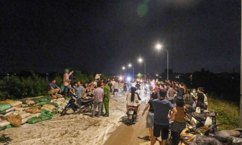 Khi phát hiện dấu hiệu nguy hiểm, hàng trăm người dân cùng lực lượng chức năng địa phương đã khẩn cấp “xuất quân" trong đêm, mang theo cuốc, xẻng, bao tải, đèn pin… để hộ đê.