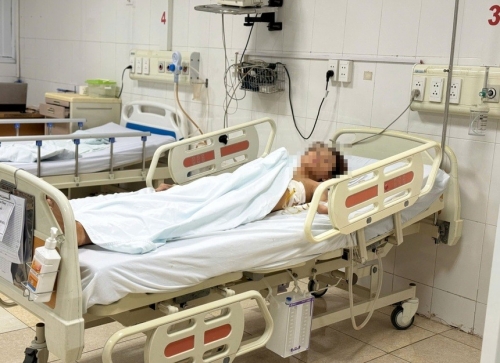 Gia đình có đưa em đến một bệnh viện khác để điều trị nhưng bệnh vẫn nặng dần, buộc phải chuyển cấp cứu lên Bệnh viện Nhi Thanh Hóa trong tình trạng nhiễm trùng - nhiễm độc nặng, suy hô hấp, đau ngực nhiều.