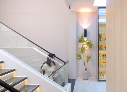 Di chuyển lên tầng hai bằng hệ thống thang máy kính hiện đại sẽ bắt gặp "trung tâm điều hành" đầy cảm hứng của nữ ca sĩ. |