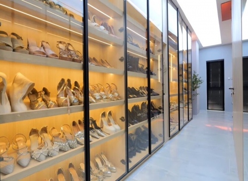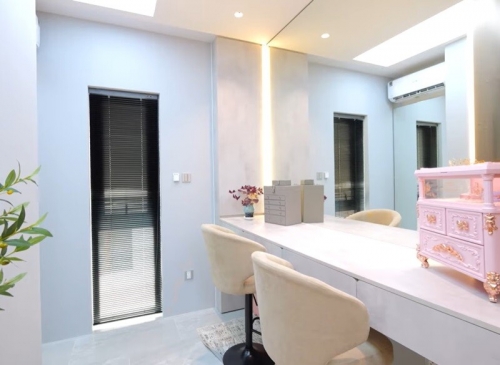 Bước lên tầng là một thế giới riêng của "nữ hoàng Hà Nhi", nơi có không gian riêng để trang điểm và phòng thay đồ, chứa những trang phục, phụ kiện của nữ ca sĩ. |