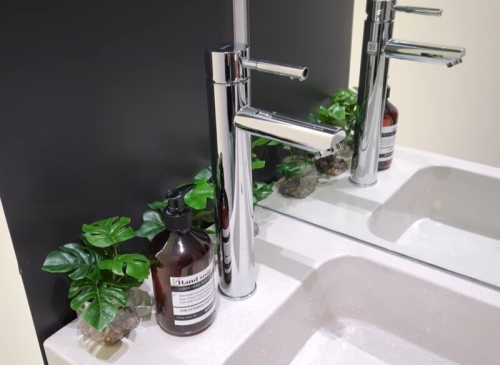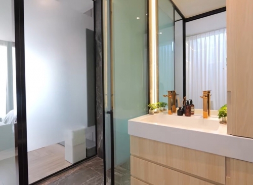 Nhà vệ sinh, phòng tắm cũng là nơi Hà Nhi cực kỳ chú trọng. Phòng vệ sinh ngay sát phòng ngủ được nữ ca sĩ lý giải là do... lười, chỉ một thời gian rất ngắn để cô có thể tiếp cận khu vực này. |