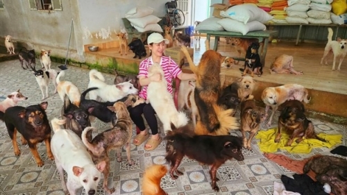 Kiều Linh cưu mang hàng trăm chú chó bị bỏ rơi. |