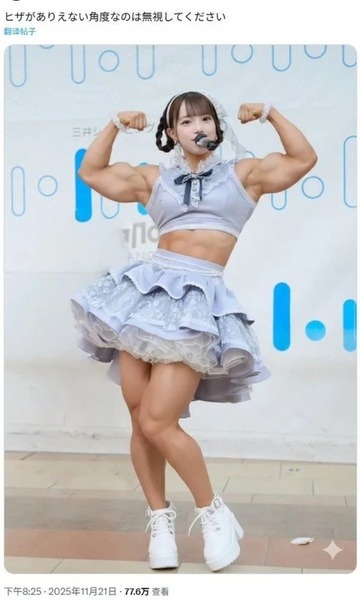Shirasu Ayano - nữ idol Nhật Bản trong nhóm nhạc Melty BeaR - chia sẻ bức hình chụp trên sân khấu ngày 20/11. Trong ảnh, cô hơi nghiêng người, tạo thành một nếp gấp nhỏ ở bụng.