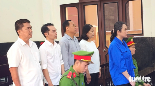Các bị cáo nghe tòa tuyên án - Ảnh: HOÀI THƯƠNG |