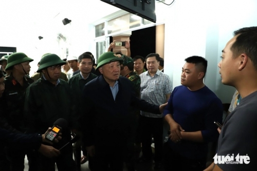 Rạng sáng 22-11, Phó thủ tướng thường trực Nguyễn Hòa Bình thăm hỏi, động viên nhóm cứu hộ tình nguyện từ Quảng Ngãi vào tăng cường cho tỉnh Đắk Lắk - Ảnh: TRUNG TÂN |