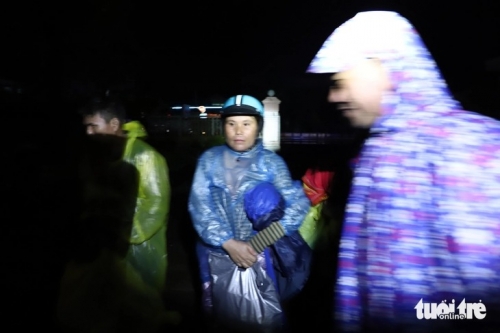 "Chúng tôi đưa anh Đường theo để tìm về nhà, nhưng sóng lớn, trời tối đặc, lái ca nô là cực kỳ nguy hiểm nên đành quay lại. Mong anh Đường nén đau thương. Ngày mai trời sáng, chúng tôi sẽ cố gắng tiếp cận để đưa bác ra ngoài", anh Dũng kể câu chuyện, cho thấy tình cảnh hiện trường còn nhiều khó khăn.