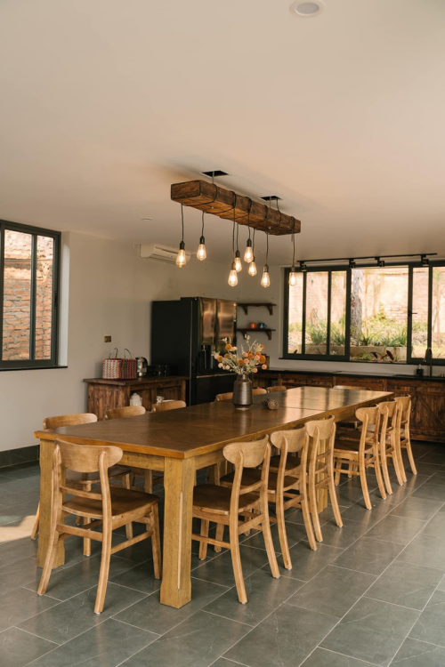 Biệt thự có tổng cộng bảy phòng ngủ, một phòng khách rộng rãi và khu bếp riêng biệt. Không gian được thiết kế mở, hướng đến sự thoải mái và gần gũi |