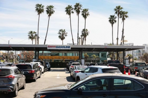 Tài xế xếp hàng chờ đổ xăng tại một trạm xăng ở Los Angeles ngày 2-3 - Ảnh: AFP |