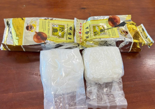 Tang vật thu giữ gồm một ô tô biển kiểm soát 60B-104.07. Kiểm tra phương tiện, công an phát hiện một túi nylon màu đen được ngụy trang kỹ, bên trong chứa 2 gói ma túy đá, hút chân không, tổng trọng lượng hơn 2kg.