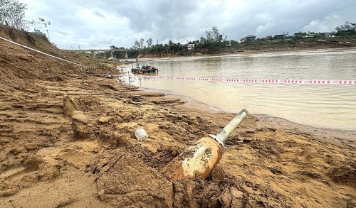 Do ảnh hưởng của các đợt mưa lũ vừa qua, khu vực bờ sông Lam đoạn qua xã Đô Lương đã bị sạt lở sâu vào bờ hơn 50m, với độ sâu từ mặt bằng bờ sông là 6m, làm phát lộ quả bom. Quả bom có kích thước lớn vơi chiều dài khoảng cộng 2,2m, trong đó phần thân chính là 1,6m, đuôi cánh quạt 0,6m và đường kính thân 0,3m.