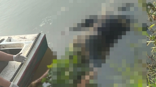 Thi thể đang phân hủy nổi trên mặt nước (ảnh: ĐC) |