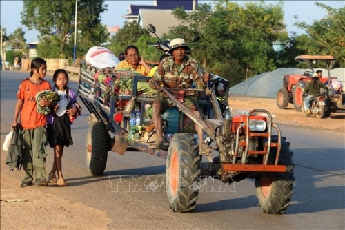 Người dân Campuchia gần khu vực biên giới với Thái Lan sơ tán tới điểm tạm trú an toàn ở tỉnh Siem Reap, ngày 8/12/2025. Ảnh minh họa: THX/TTXVN |