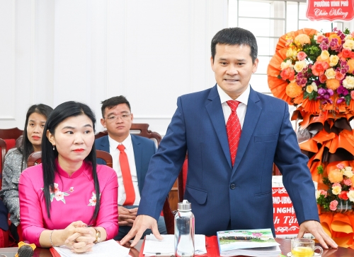 Thay mặt lãnh đạo tỉnh, Phó Bí thư Thường trực Tỉnh ủy, Chủ tịch HĐND tỉnh Hoàng Nghĩa Hiếu ghi nhận và biểu dương những thành tích, nỗ lực đổi mới trong công tác đào tạo của Trường Cao đẳng KTCN Việt Nam - Hàn Quốc, góp phần cung cấp nguồn lao động chất lượng cao cho tỉnh, đáp ứng nhu cầu thị trường và doanh nghiệp.