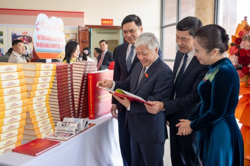 Phó Chủ tịch Thường trực Quốc hội Đỗ Văn Chiến và các đại biểu tham quan Triển lãm 80 năm Quốc hội Việt Nam và dấu ấn nhiệm kỳ Đoàn ĐBQH tỉnh Nghệ An. Ảnh: Phạm Thắng |