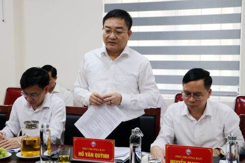 Phó Trưởng Ban Quản lý Khu kinh tế Đông Nam Hồ Văn Quỳnh báo cáo tình hình triển khai thực hiện dự án Khu công nghiệp Hoàng Mai II |