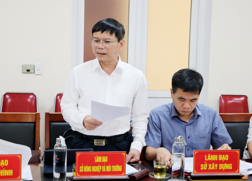 Phó Giám đốc Sở Nông nghiệp và Môi trường Phạm Văn Toàn trao đổi các vấn đề liên quan đến mỏ vật liệu thực hiện các dự án |