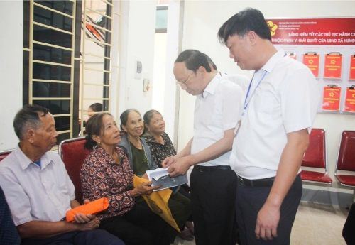 Phó Chủ tịch Thường trực UBND tỉnh Bùi Thành An nghe phản ánh của người dân về việc cấp đổi Giấy Chứng nhận quyền sử dụng đất tại Trung tâm Phục vụ hành chính công xã Hưng Nguyên Nam