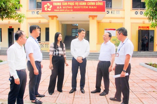 Phó Chủ tịch Thường trực UBND tỉnh Bùi Thanh An kiểm tra tại Trung tâm phục vụ hành chính công phường Vinh Hưng