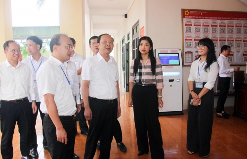 Trước khi làm việc với lãnh đạo các xã, phường, Phó Chủ tịch Thường trực UBND tỉnh Bùi Thanh An và đoàn công tác đã đến kiểm tra hoạt động của Trung tâm Phục vụ hành chính công các phường, xã.